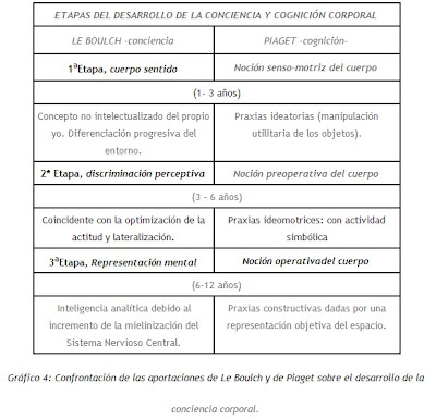 Gráfico 4: Confrontación de las aportaciones de Le Boulch y de Piaget sobre el desarrollo de la