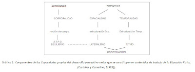 Gráfico 2: Componentes de las Capacidades propias del desarrollo perceptivo-motor que se constituyen en contenidos de trabajo de la Educación Física.(Castañer y Camerino, [1993]).