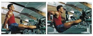Los manos apoyadas en el borde de un banco, los pies apoyados en otro banco, el cuerpo en el vacío, inspirar y efectuar una flexión de los codos seguida de una extensión. Espirar al final del movimiento.