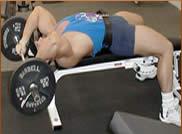 Estirado en un plano horizontal, la barra cogida en pronación, los antebrazos flexionados, brazos verticales, inspirar y efectuar una extensión de los codos procurango no separarlos demasiado para que la barra descienda a nivel de la frente o por detrás de la cabeza.
